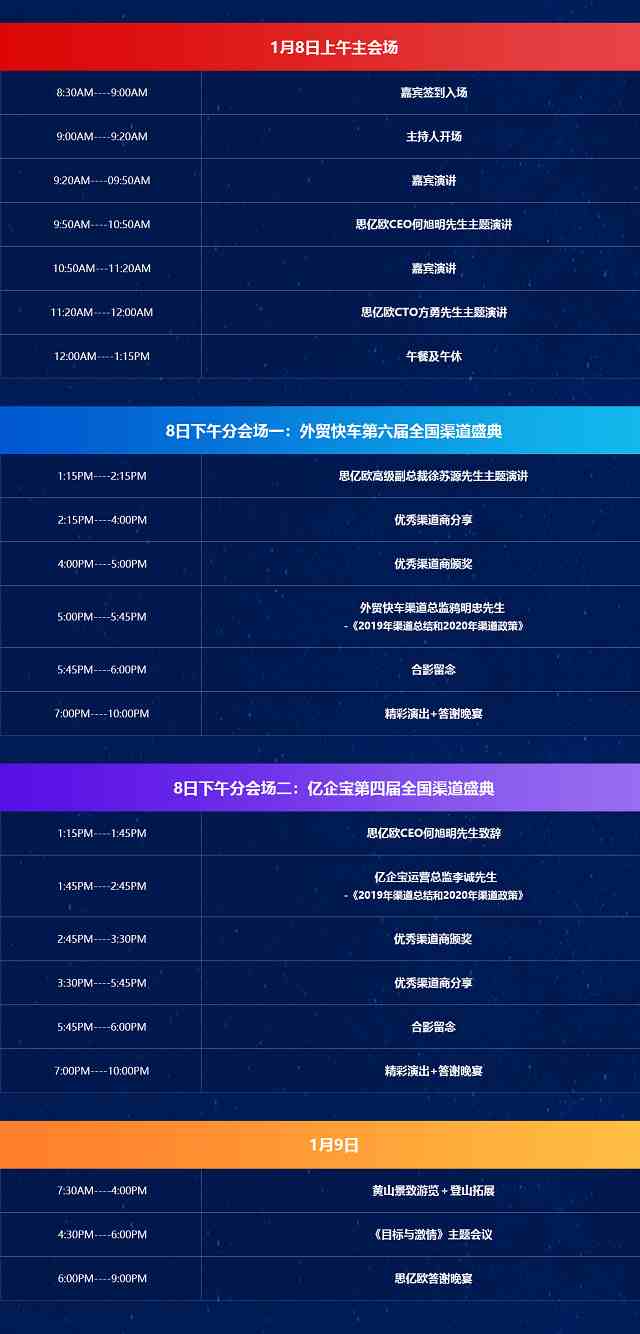 2019年,全体思亿欧人带着十六年的辉煌,带着对全国客户的感恩之心,在创新的基础上深耕产业布局、产品研发、市场开拓、客户服务、友好往来和公司管理,迎接新的未来。2019年,思亿欧新增渠道商80余家,全国渠道布局更加完善;2019年,思亿欧稳中求进,不断完善品质,优化升级,外贸快车成功推出外贸快车加强版,亿企宝全新后台发布;为了更好地提升市场开发、渠道体系的成长能力,2019年钱塘军校共完成外贸快车销售新人集训五期,以及外贸快车全国合作伙伴寻梦之旅一场,为从一线营销精英,到中层管理人员,到企业高管的各级人群,提供全方位立体化的专业知识、技能,管理理论、实践,以及态度、精神和价值观的培训,为全国渠道体系输送了两百余位德才兼备的一线营销和高层管理精英。